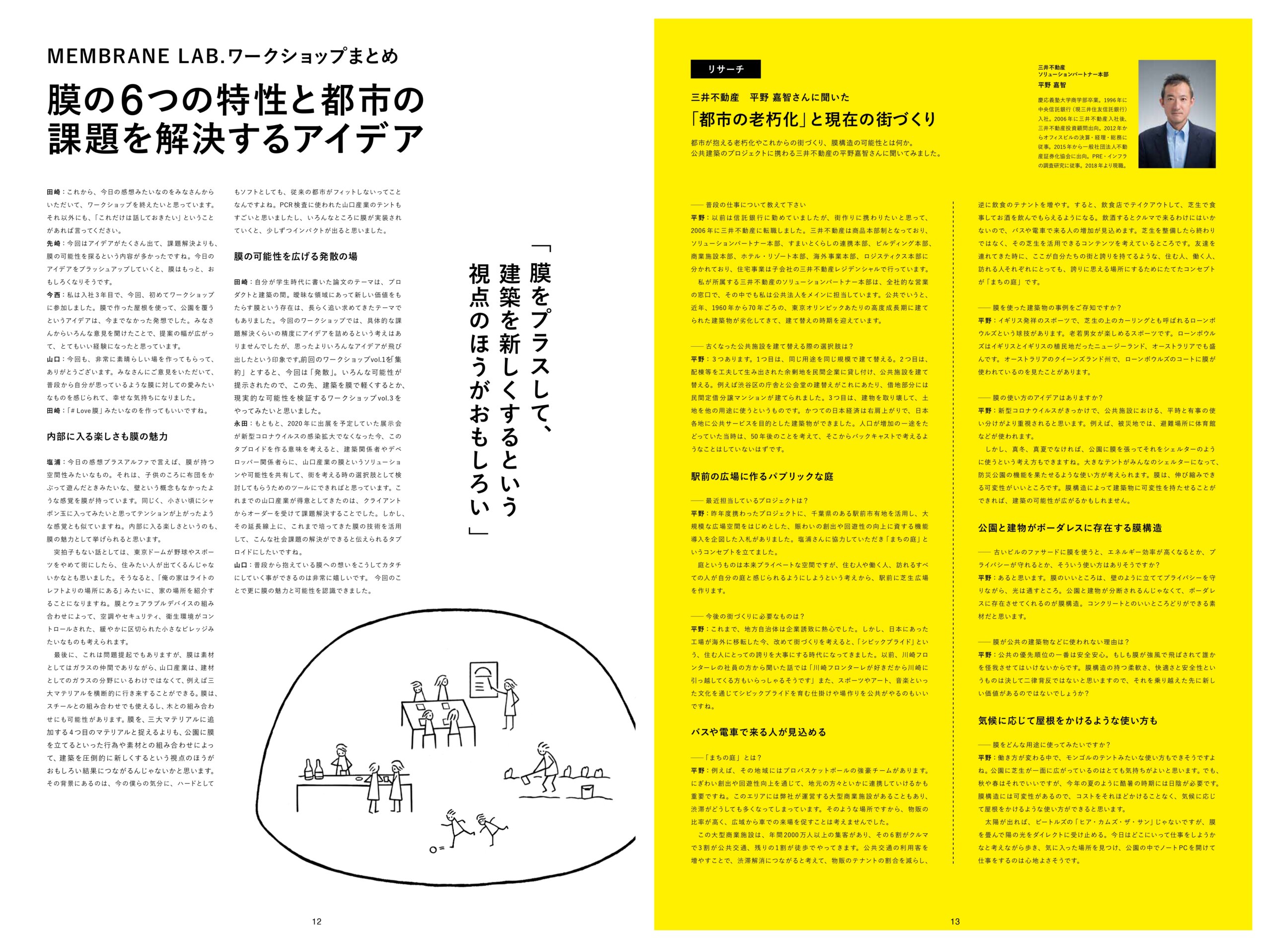 MEMBRANE LAB.では、製品開発だけでなく、膜の可能性を拡張し、社会課題の解決に資する新たな構想を練るためのワークショップやリサーチを積極的に行っています。