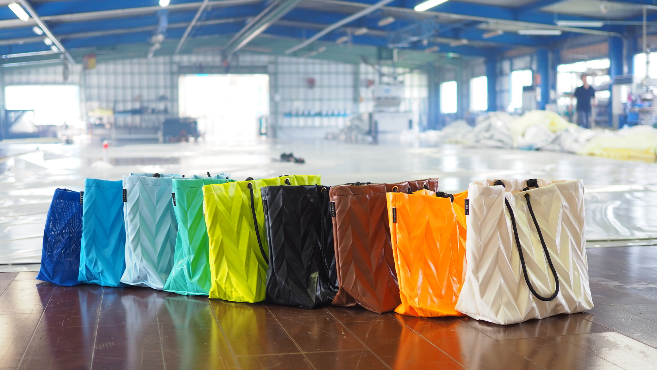 山口産業が推進する、年間約100トンに及ぶテント膜の廃棄物問題解決を目指す「廃棄ZEROプロジェクト」の一環として実施されました。廃棄されるテント膜の端材をアップサイクルし、「プリーツバッグ」を発表しています。https://prtimes.jp/main/html/rd/p/000000021.000100006.html