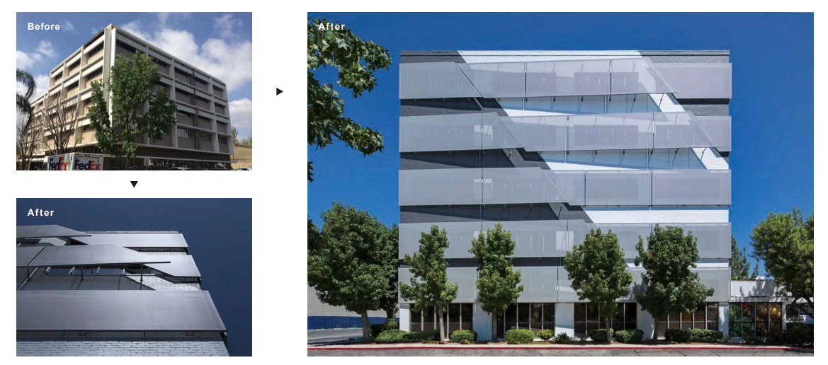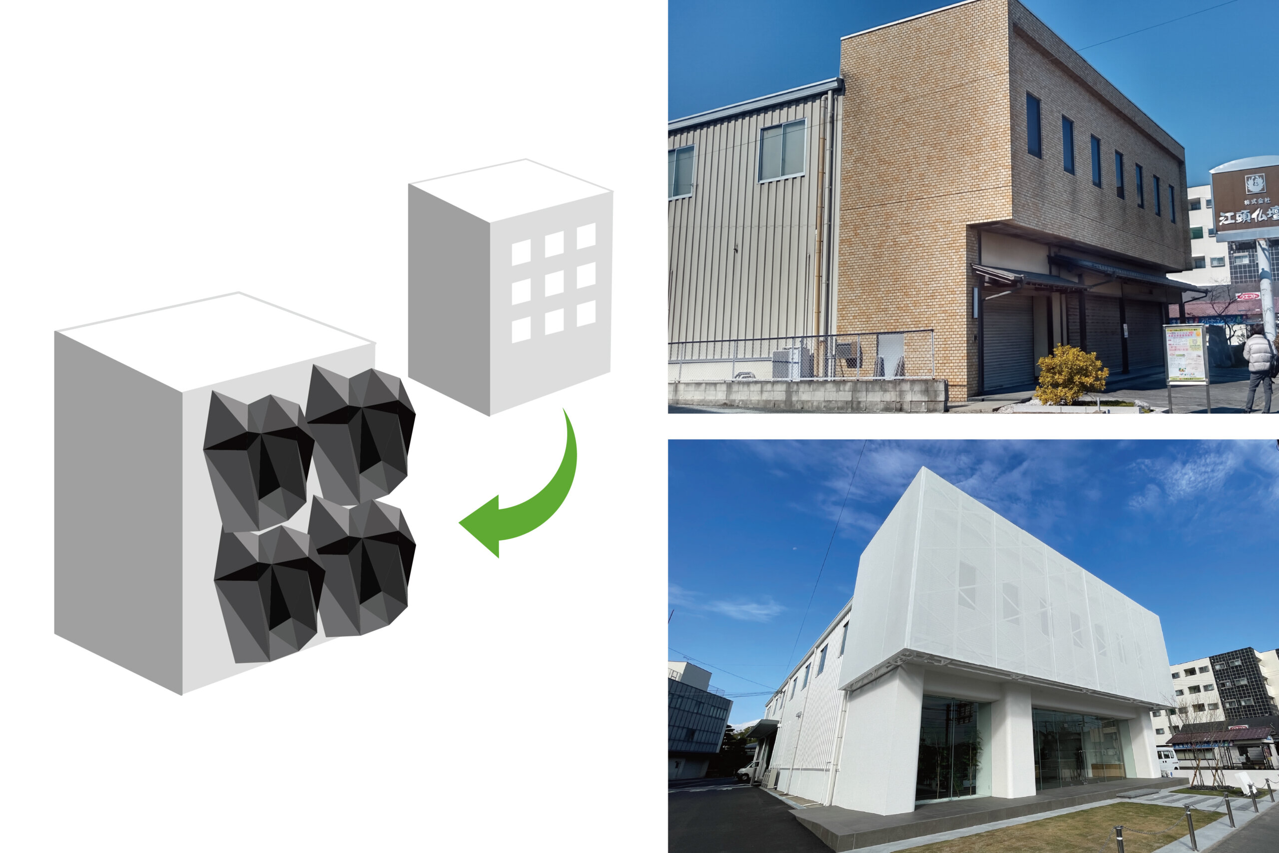 原材料が軽量なため、既存建屋への負担が少ないです。 建て替えを行わずに外装を一新するために用いられます。 膜素材の柔軟性により、自由な形状や曲面造形が可能です。