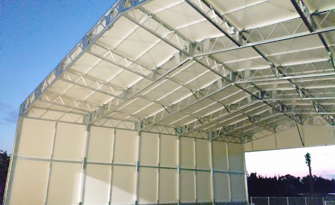 「膜構造建築物」の一種に分類され、倉庫から工場の荷捌きスペース、テニスコートからプール、ショッピングモールの通路屋根まで幅広いシーンで用いられています。