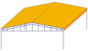 テント上屋(てんとうわや)とは、布地のような柔らかい膜材料(テント生地)を、鉄骨などのフレーム(骨組み)で張って作られた屋根のことです。