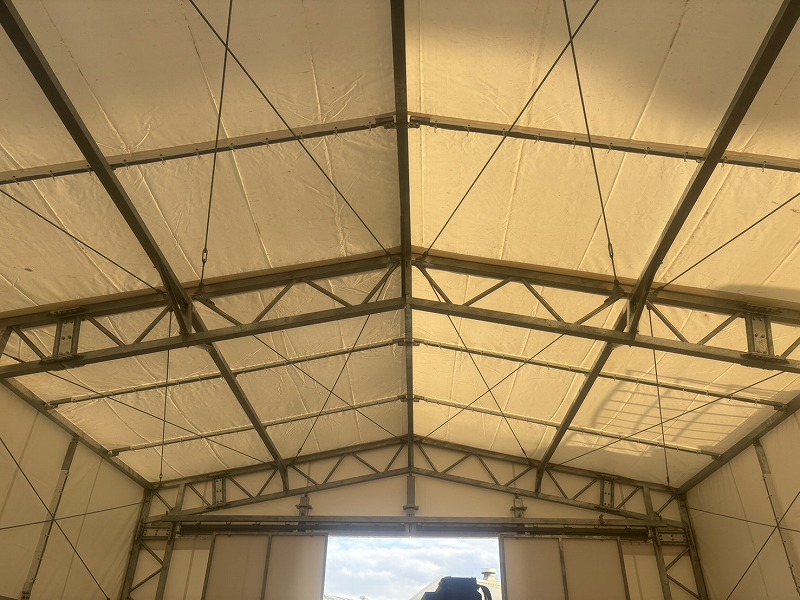 当初は常設倉庫の建設も検討されていましたが、使用期間が限定的であることから、コストパフォーマンスと柔軟性に優れた「レンタルテント倉庫」をご提案し、ご用命いただきました。